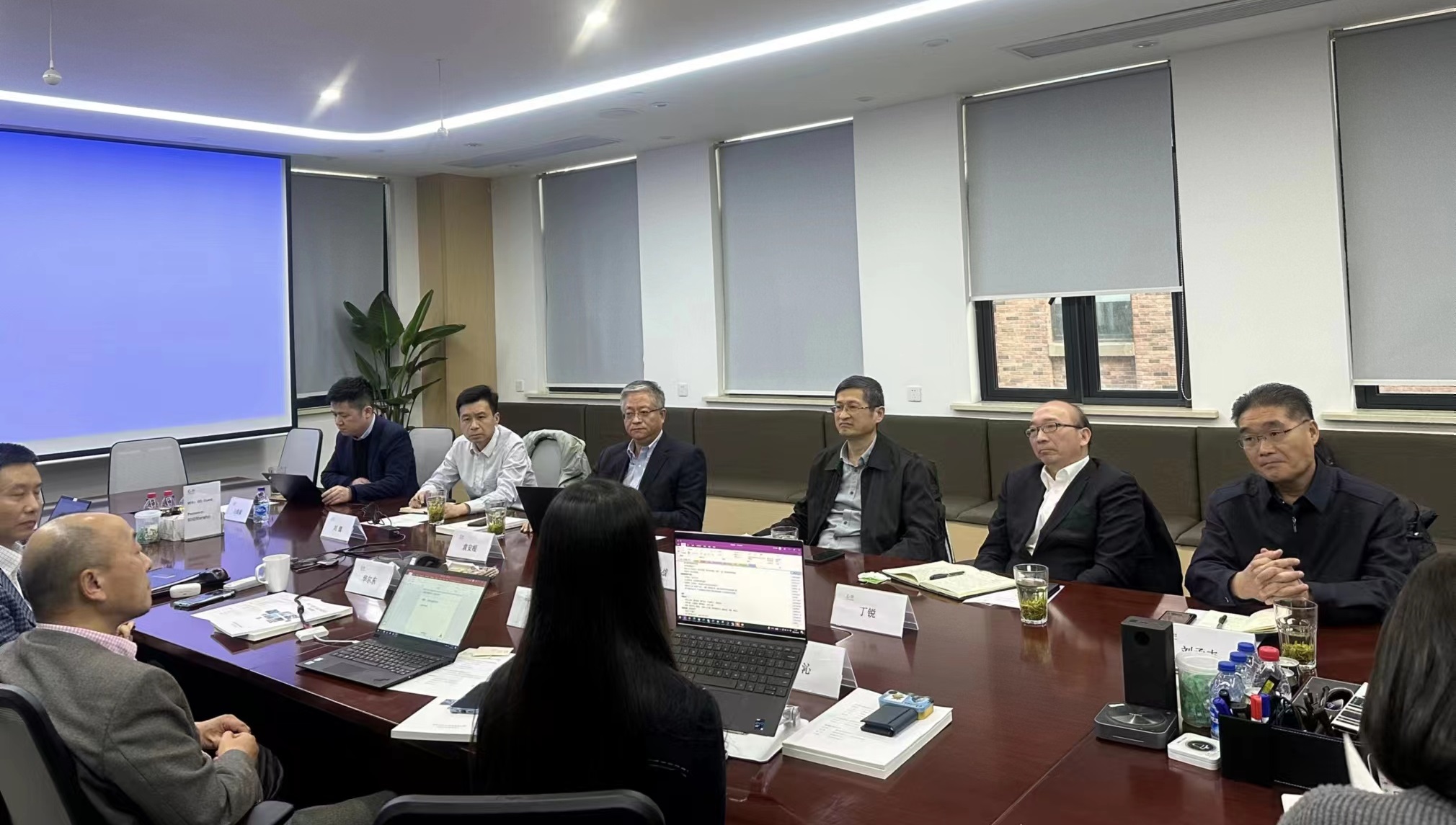 在通和毓承上海總部,丁銳與市工信局局長席世戰、市金融控股集團副總經理劉懿等一行拜訪了該公司首席執行官陳連勇,并同天匯資本董事長袁安根等舉行了座談,五方就創業項目合作模式設計、利益共建共享方式、風險防范措施等內容進行了深入分析研究,并形成了初步合作策略。