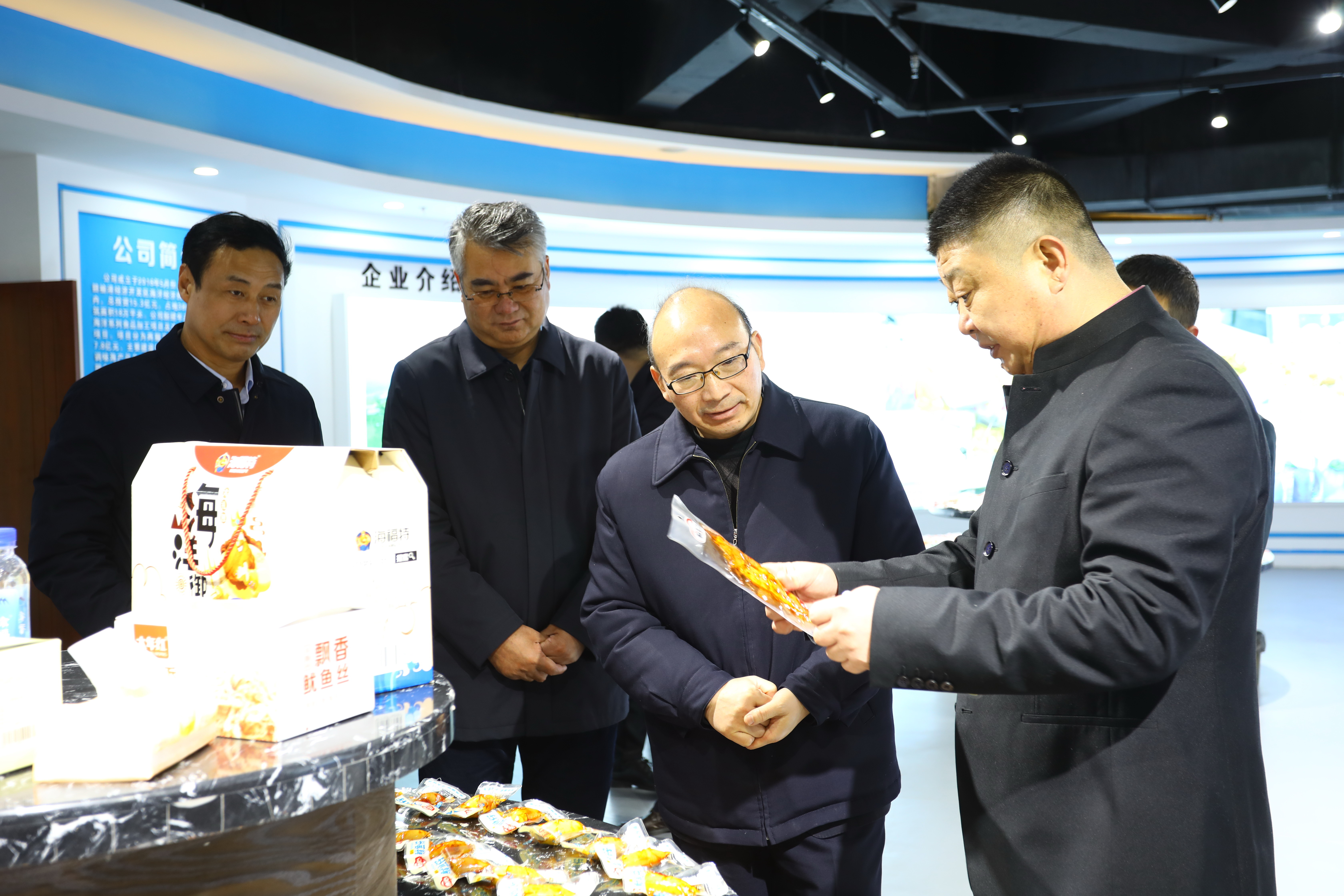 在海福特公司,丁銳一行參觀了產品展覽中心、冷鏈物流儲備庫及加工車間,聽取了該公司董事長賀松對企業發展、產品研發、生產銷售、出口貿易等情況介紹,雙方就加強市場對接、拓展合作范圍進行了深入交流。在中復連眾集團,喬光輝董事長熱情接待了丁銳一行,雙方分別介紹了企業概況、前期合作基礎及平臺建設情況,并就如何發揮各自優勢,在復合材料研發、檢測及科技孵化等方面深化合作達成了初步意向。
