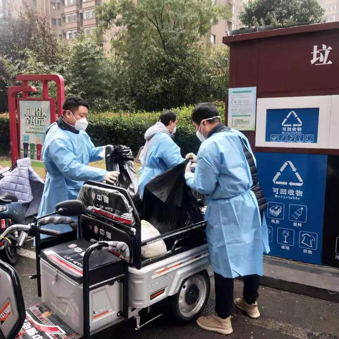 在萬潤社區藍天華僑城,金航和神特公司的志愿者們變身環衛工人,轉運轄區集中隔離點和居家隔離單元生活垃圾,并負責對轄區集中隔離點以及居家隔離小區單元的生活垃圾進行專業化消殺與轉運,確保小區垃圾日產日清,全程多次消毒消殺,閉環無縫轉運。
