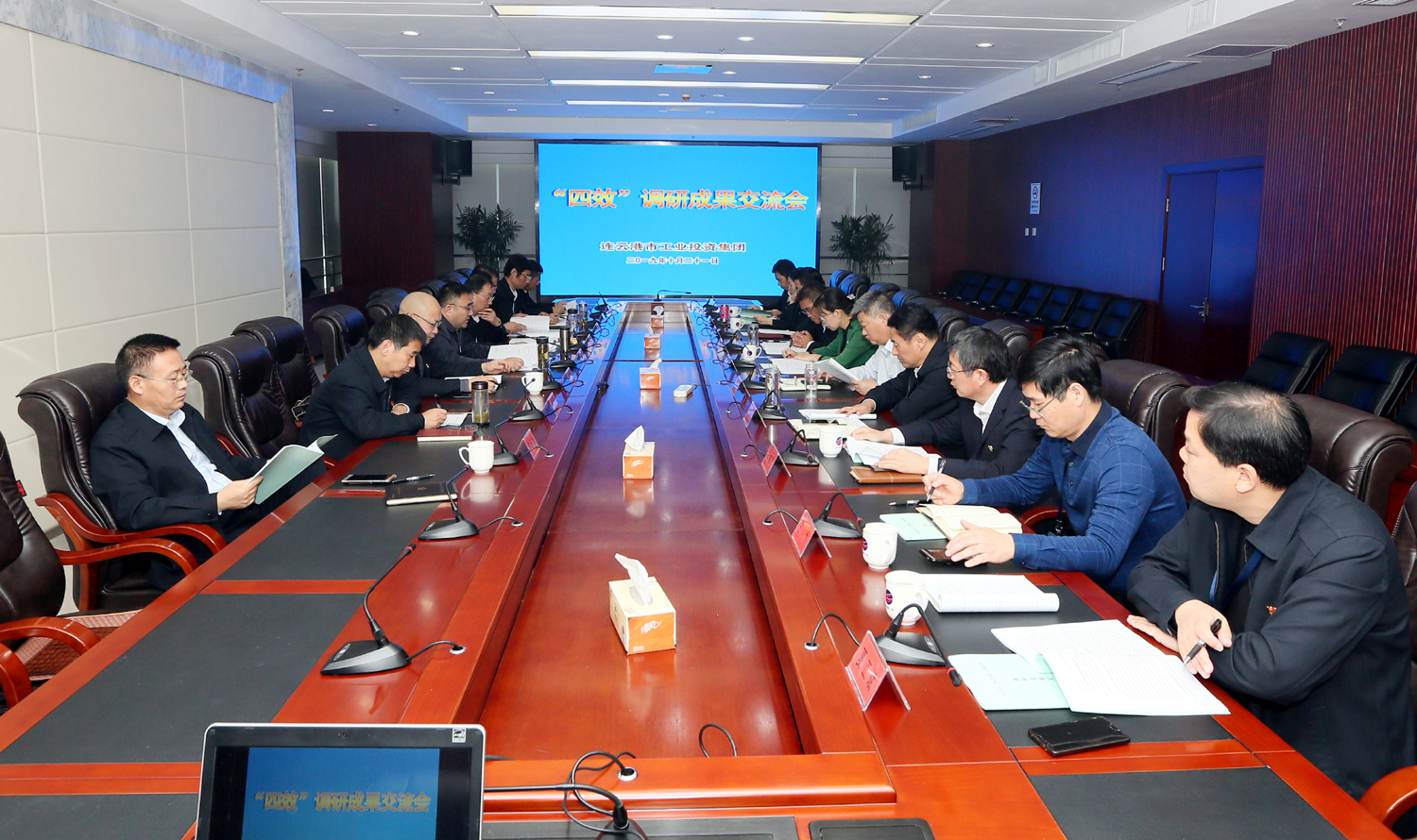 1021日上午,集團公司黨委書記、董事長、“不忘初心、牢記使命”主題教育領導小組組長楊龍主持召開“四效”調研成果交流會。市委主題教育第十指導組副組長、市國資委黨委委員、四級調研員王懷東到會指導,集團公司總經理胡建明等黨委領導班子成員,集團公司主題教育領導小組相關同志參加會議。