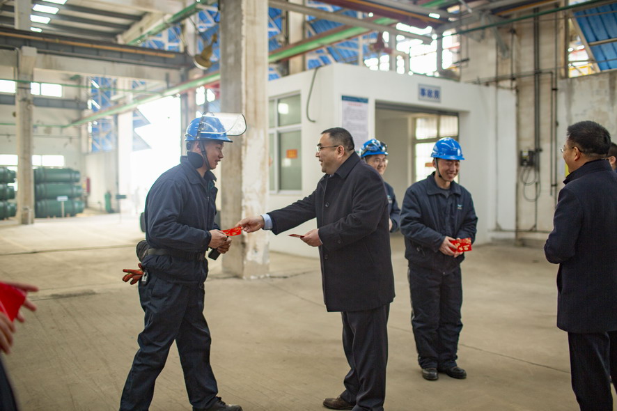 2月5日,集團(tuán)公司董事長(zhǎng)、黨委書記楊龍,黨委副書記戴鴻鳴等領(lǐng)導(dǎo)輕車簡(jiǎn)從,深入氯堿公司、氨綸公司、華茂公司、供電公司等基層單位,向春節(jié)期間堅(jiān)守在生產(chǎn)一線的廣大員工致以節(jié)日的問(wèn)候和祝福,并送去慰問(wèn)品。