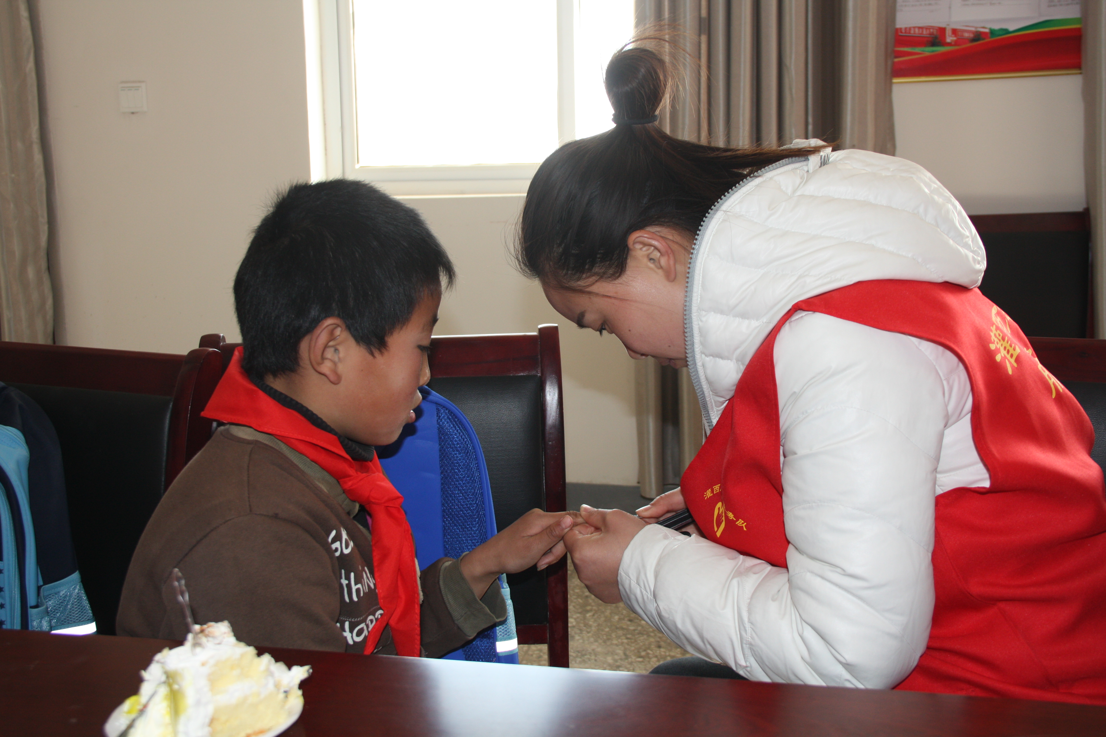 同時(shí),志愿者們還把準(zhǔn)備好的書包文具等學(xué)習(xí)用品送到孩子們的手中,孩子們?yōu)橹驹刚吲浯骷t領(lǐng)巾,并一一結(jié)對(duì)合影留戀,讓這初春多了一絲溫暖。通過本次活動(dòng),讓困難家庭兒童收獲溫暖的同時(shí)懂得感恩,并將這份愛心繼續(xù)傳遞下去,助力他們健康快樂的成長(zhǎng)。