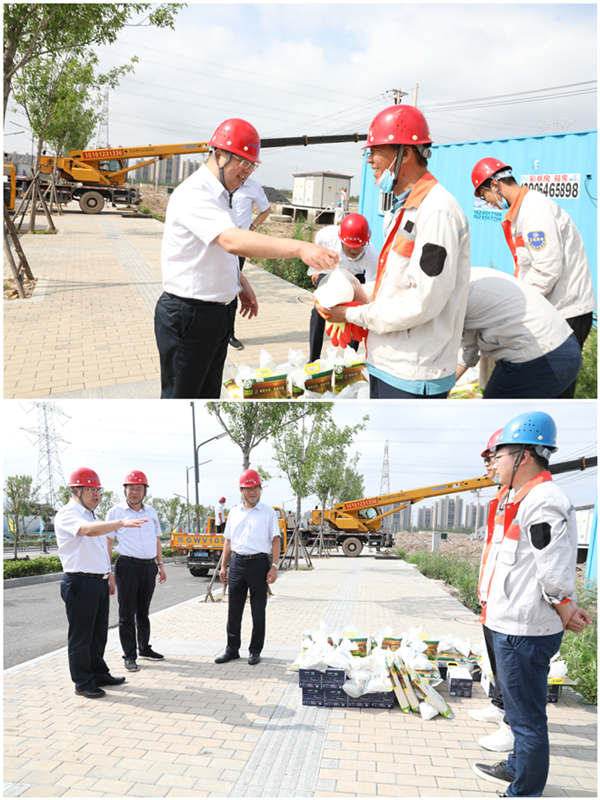 7月28日上午,集團公司黨委副書記戴鴻鳴、工會主席劉承志一行,深入公司施工一線走訪慰問職工,把綠豆、牛奶等防暑降溫用品送到他們手中,在炎炎夏日,為一線職工送去集團公司的深切關(guān)懷。 在臺北工地,戴書記與施工人員親切交談,簡要了解了工程的施工情況,叮囑他們在夏日高溫期間要注意安全,做好防暑降溫措施,確保安全生產(chǎn)和身體健康。(電宣)