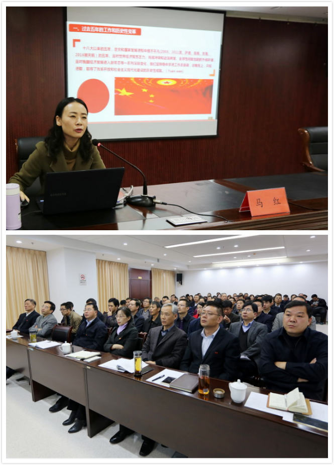 本場報告會邀請市委黨校沿海開發研究室副教授馬紅主講。馬紅教授以《不忘初心,牢記使命,為實現中華名族偉大復興的中國夢不懈奮斗!》為主題,從鮮明主題、歷史性變革、主要矛盾的深淵影響、兩個一百年奮斗目標、全面從嚴治黨等13個方面出發,引用了古今中外大量案例,配合通俗的語言和生動的幻燈片,系統而詳實地向在座黨員介紹了“黨的十九大報告”精神與內涵,并結合經濟建設的相關內容,給我公司的發展提出了寶貴意見。