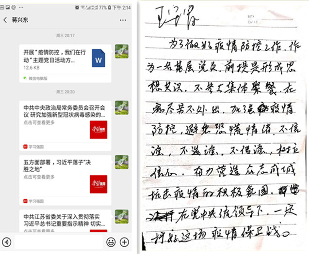 為了引導(dǎo)黨員統(tǒng)一思想認(rèn)識,凝聚思想共識,激發(fā)黨員做好疫情防控工作的思想自覺和行動自覺。2月12日,臺南供電所通過微信方式組織開展了“疫情防控,我們在行動”主題黨日活動。在微信平臺上,黨員們共同學(xué)習(xí)了《中共中央政治局常務(wù)委員會召開會議研究新型冠狀病毒感染的肺炎疫情防控工作 》、《五方面部署,習(xí)近平落子“決勝之地”》、《江蘇省委常委會召開會議進一步把疫情防控工作做實做細(xì)做到位》重要指示精神;同時,開展了“我為疫情防控出份力”活動,全體黨員暢談疫情防控體會和做法。黨員王守富在活動中表示,作為一名基層黨員,前提是形成思想共識,不參與集體聚餐,在家盡量不外出,不信謠、不傳謠,樹立信心奮力營造眾志成城抗擊疫情的積極氛圍,在黨中央統(tǒng)一領(lǐng)導(dǎo)下,一定能打好疫情防控保衛(wèi)戰(zhàn)。(劉繼美)
