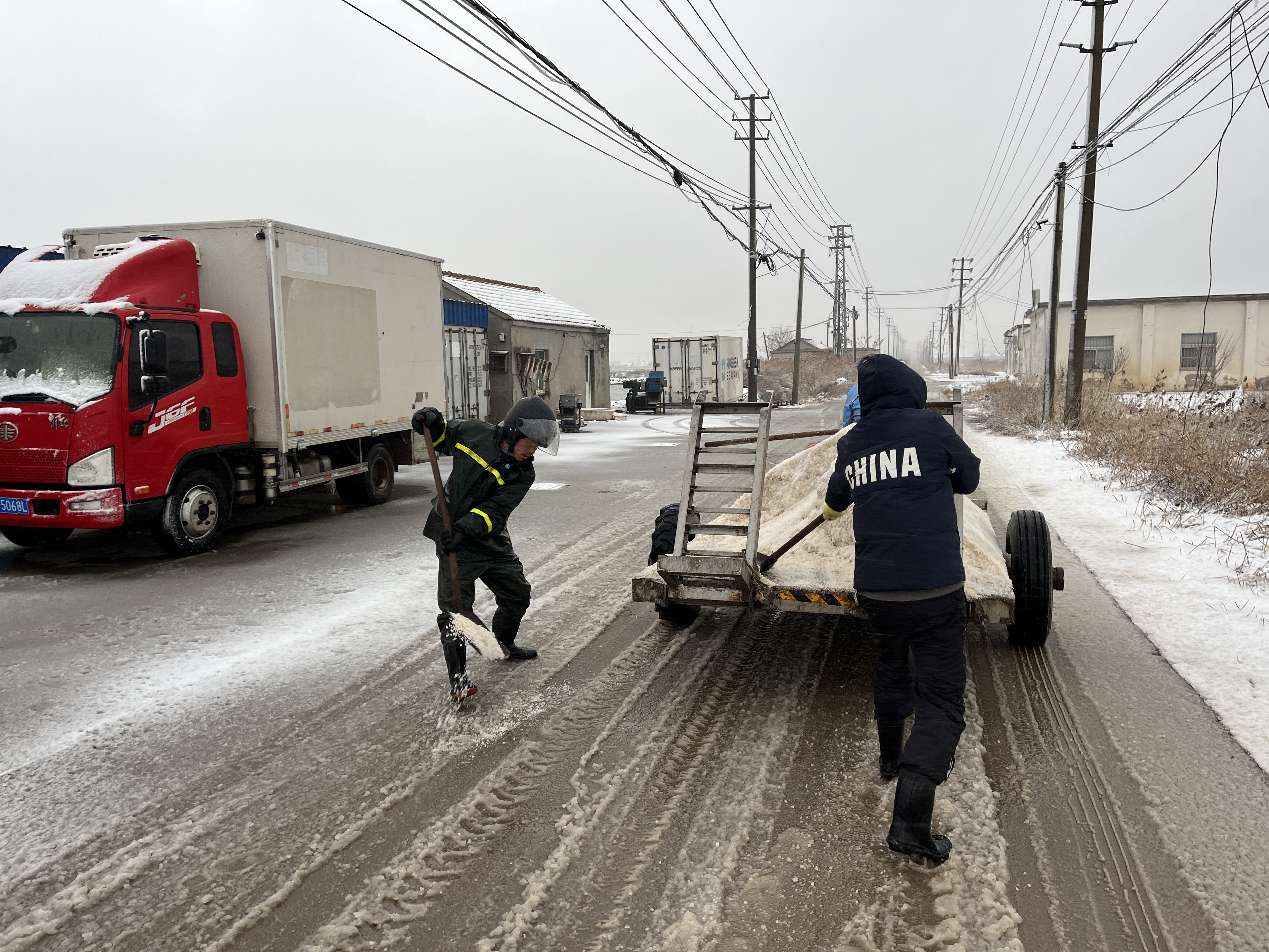 以雪為令,全力奔赴清雪戰(zhàn)一線(xiàn)。隨著降雪量增大,采取“人工+機(jī)械”的作業(yè)方式,使用自產(chǎn)原鹽融雪劑對(duì)轄區(qū)中二圩居民點(diǎn)、鹽灘內(nèi)部道路、辦公區(qū)域等20余條主次干道不間斷地毯式清雪除冰作業(yè)。清雪現(xiàn)場(chǎng),大家不畏嚴(yán)寒,積極行動(dòng),鏟的鏟、推的推,干得熱火朝天,開(kāi)辟出一條方便群眾出行的“安全路”。截止目前,已累計(jì)出動(dòng)車(chē)輛30余臺(tái)次,300余人次參與清雪除冰行動(dòng),確保職工群眾“雪中通行,雪后路清”。