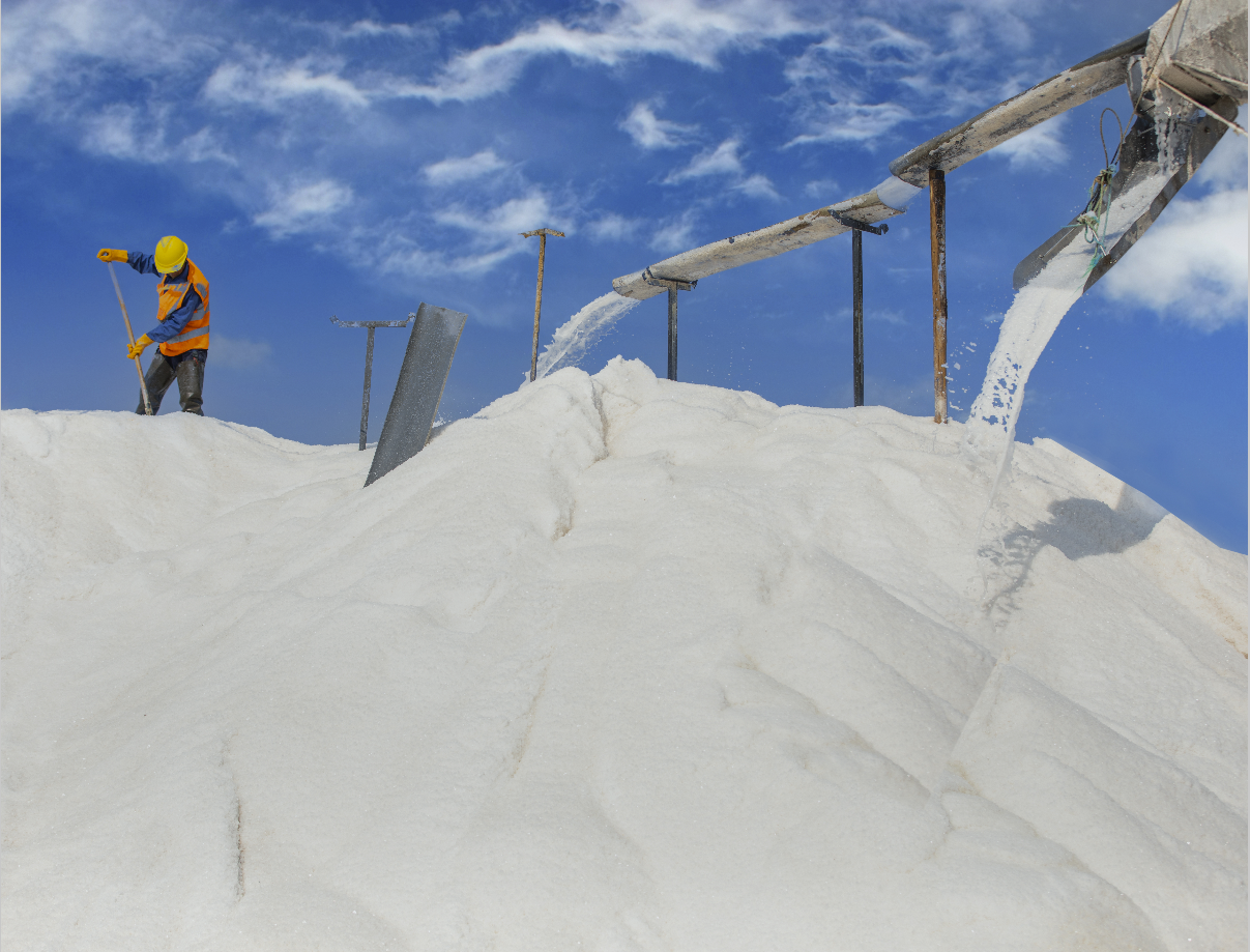 “4號扒鹽機(jī)組扒鹽即將結(jié)束,10班、11 班的全體人員 8 點(diǎn) 10 分到11班進(jìn)行搬機(jī)……”在日曬制鹽公司的灘頭,不遠(yuǎn)處的“大喇叭”傳達(dá)著生產(chǎn)任務(wù)。連日來,日曬制鹽公司全力推進(jìn)扒鹽生產(chǎn),已扒鹽 16 萬噸,長鹽 21 萬噸,廣大員工激情奮戰(zhàn)在鹽業(yè)生產(chǎn)第一線。5月1日一大早,天剛蒙蒙亮,鹽池里便傳來“轟隆隆”的響聲,工人操作機(jī)械活碴。晴好的天時(shí)為忙碌的工人增添了些許奮斗的印跡,臉上的汗珠透過太陽反照出耀眼的光芒。