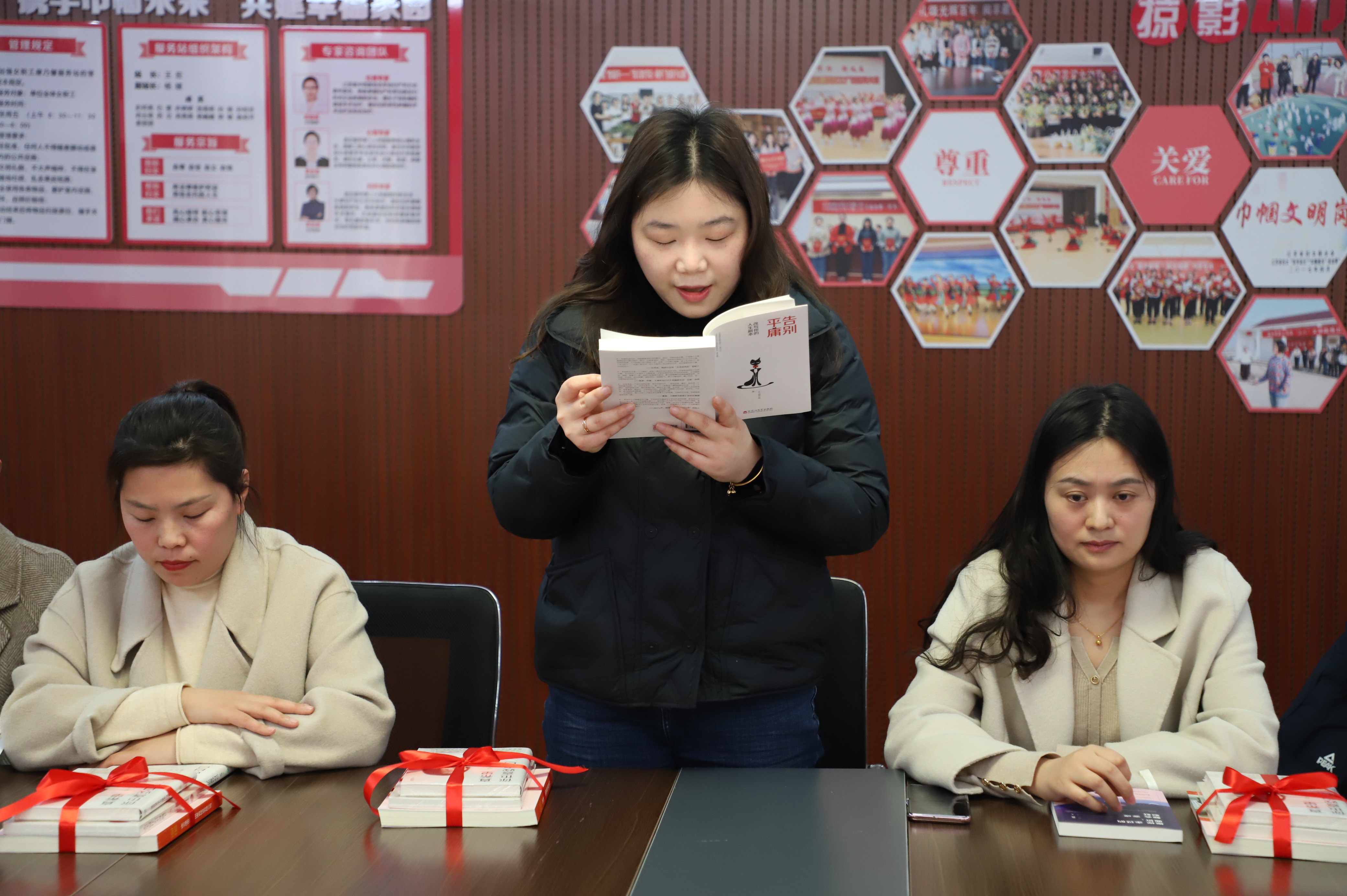 來吧,來吧,相約三八。相約在春光明媚的三月里,相約在閱讀分享的文韻里,相約在康乃馨服務(wù)站里......。3月7日下午14:00,公司工會開展的“巾幗心向黨”主題讀書分享會在女職工朗朗的誦讀中拉開帷幕。來自公司各條戰(zhàn)線上的女職工們從教育、文學、哲學、健康等方面內(nèi)容,進一步抒發(fā)家國情懷,弘揚時代精神,給我們帶來了一場聽覺盛宴。塑造知識型的“她”,并為女職工贈送有關(guān)紅色主題、女性勵志等方面的書籍,在廣大婦女中營造“好讀書、讀好書、讀書好”的良好氛圍,促進家庭文明、社會和諧。