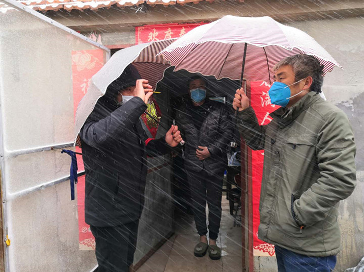 天氣惡劣,擋不住黨員干部誓與疫情作斗爭的腳步;風雪雖冷,凍不住抗疫情一線工作者的斗志!他們夜以繼日默默堅守、風雪之中砥礪前行,必將打贏這場疫情防控狙擊戰!(邱利民)
