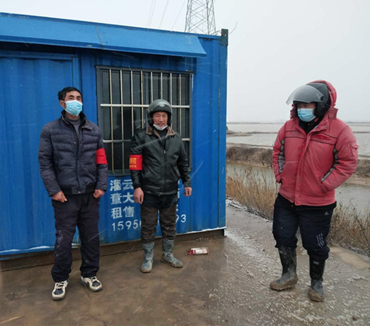 在324省道灌西入口和場內各道路口,綜合治理辦公室和新河、埒南制鹽公司疫情防控一線的“戰士們”迎著風雪和嚴寒的猛烈沖擊,堅守崗位,認真履職,他們在卡口值守,嚴格按照要求對出入車輛、人員進行檢查,認真做好相關登記,以實際行動踐行著諾言,他們守住了防疫一線的門,扎牢了抗擊疫情的網,他們是風雪中最美的身影!鮮紅的黨旗下,黨徽熠熠生輝,要問今天最美的風景是什么,值守卡口的黨員干部用行動告訴你,是風雪中對灌西這片凈土最堅定的守護!