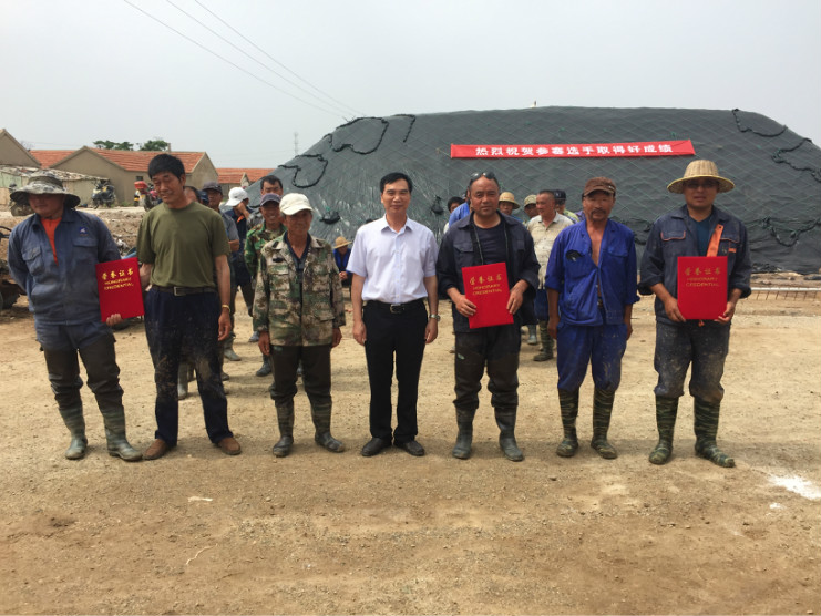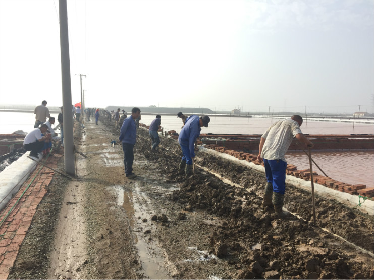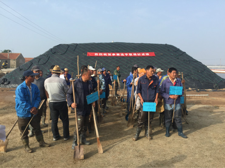 比賽開始前,生產服務公司經理王緒前首先就天溝建設要求、評分標準等事項進行了現場說明。7點20分,隨著裁判員的一聲令下,比賽正式開始。參賽選手們按照賽前抓鬮序號,迅速投入到比賽中。賽場上,每一組選手都分工明確,澆水、翻泥、踩實、做埝、整平一氣呵成,大家都表現的極為熟練,充分展示了參賽選手扎實的基本功。比賽中,三位裁判在比賽場地來回巡查,認真記錄每一組參賽選手的勞動過程,力求做到公平、公正。9點20分,隨著最后一組選手的工作完成,比賽正式結束。隨即,三位裁判又根據比賽過程中的記錄情況結合最終工程質量對每一參賽小組進行綜合評分。最終,來自埒南制鹽分公司的章保衛、高明成榮獲比賽第一名;江海兵、張春連以及尹步松、汪禮兵兩組選手榮獲第二名;新河制鹽分公司朱明、戴繼明,郁雷敏、李正軍,楊春旭、史春海三組選手榮獲第三名。