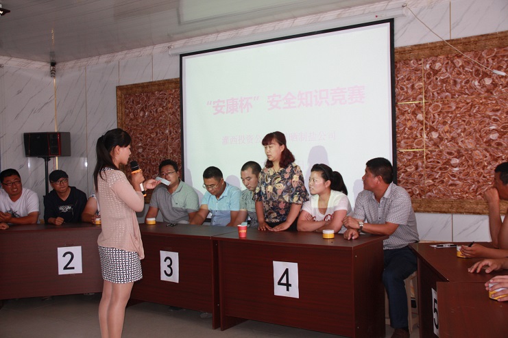 為全面落實企業(yè)安全生產(chǎn)主體責任,進一步深化“安全生產(chǎn)月”活動,7月3日,灌西投資公司在生產(chǎn)服務(wù)公司會議室舉辦安全知識競賽活動,來自各單位的代表隊27人參加比賽,公司副總經(jīng)理古浩光及日曬制鹽公司的管理人員、班組長觀看比賽。