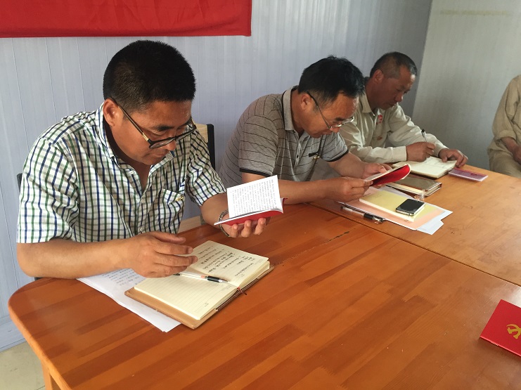 會議最后新河支部全體黨員重溫入黨誓詞。新河黨支部全體黨員起立。由支部書記李加新同志帶領大家宣讀誓詞。(新河支部程龍)
