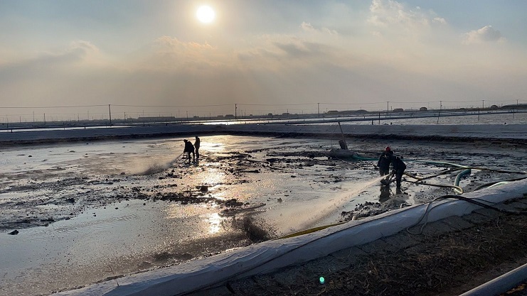 新河制鹽分公司進行硫酸鈣清理工作