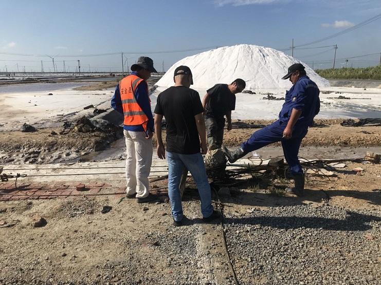 此次檢查的內容包括扒鹽作業現場、灘池電力系統、機房收放系統、機械設備、臨時用電、安全防護裝置、道路交通、班組安全管理措施等。