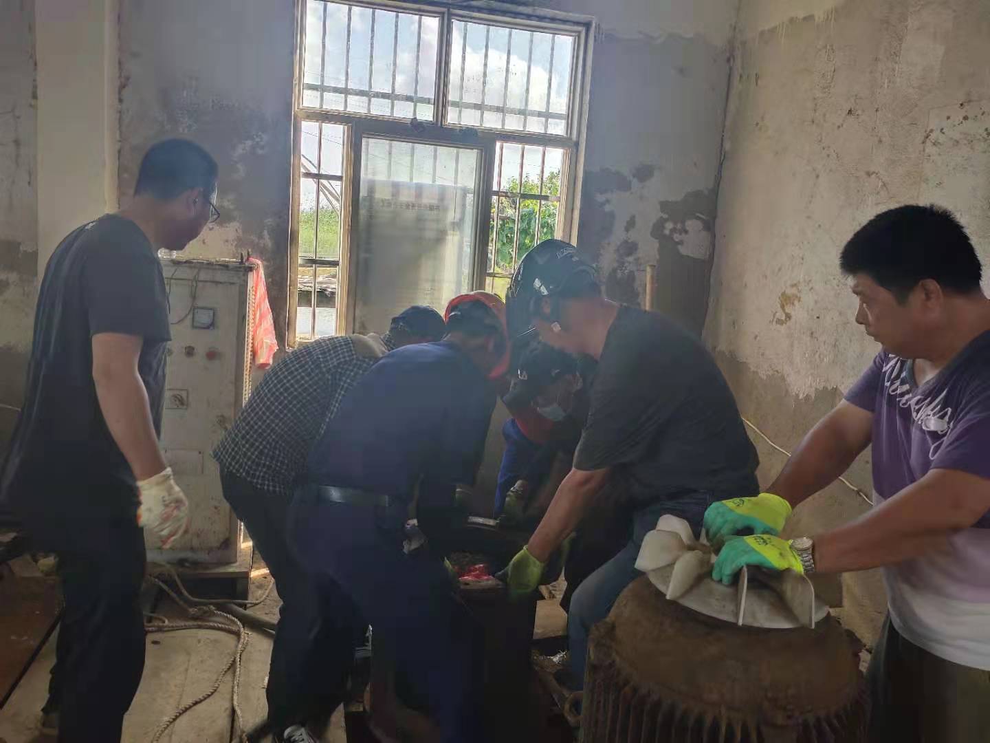 鑒于此次疫情已經(jīng)迅速波及國內(nèi)多個省市,防控形勢十分嚴峻。當前又正值海水養(yǎng)殖戶用水高峰,連續(xù)多日供水使六圩閘大站5臺155KW軸流泵其中三臺出現(xiàn)故障,小站2臺55KW軸流泵全部發(fā)生故障,機泵不能正常運轉(zhuǎn)。資源管理中心當即召開班子會議,對防疫和修泵工作進行統(tǒng)籌部署,明確分工,壓實責任,積極做好防疫宣傳引導,不留死角;搶修機泵做到安全監(jiān)護管理到位,確保潮汛來臨之前要維修到位,不誤供水。為了搶時間趕進度,該公司經(jīng)理江德全多方協(xié)調(diào),從兄弟單位借調(diào)2名年輕機修工錢明星和楊加棟來協(xié)助機修組,并安排六圩閘站全體員工參與。他們頂著機房30多度的高溫加班加點,中午吃著快餐,飯后又立即投入搶修工作中,通過六天的連續(xù)奮戰(zhàn),機器全部維修到位,保證了泵站及時供水。(資源管理中心宣)