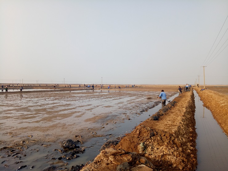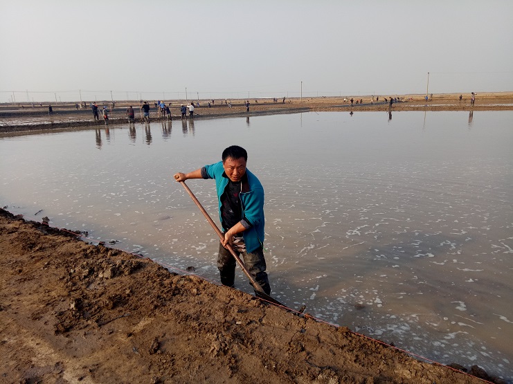 近日,實業公司制鹽分公司海鹽基地,一班班組灘場改造呈現出一片繁忙的景象。日曬制鹽新河制鹽分公司、埒南制鹽分公司等兄弟單位近兩日,輪流調動數百余人參加實業公司海鹽基地撈溝做埝大會戰?,F場場面十分壯觀,大家干得熱火朝天:有挖泥澆水的、踩泥打堰的、抹埝找平的......員工們齊心協力地打好這次攻堅戰。本次共計撈溝做埝近四千米。實業公司全體員工對兩公司的辛勤勞動給予了贊許和由衷的感謝。(史祥燕)