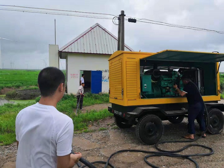 8月10日強臺風“利奇馬”登陸連云港,降水量達到暴雨級別,明威公司立即成立抗澇防汛指揮中心,指揮中心由明威公司全體班子成員組成,搶險隊由全體職工組成。險情一:由于降水較集中,稻田無法及時排水,按既定方案打開二灣排水閘、八十四萬排水閘。暫時緩解稻田排水壓力。險情二:大雨持續大德稻田大面積被淹,河道排水水流不夠,一時無法緩解稻田排水壓力,指揮中心迅速作出決定,啟用路北強排站,搶險隊按預定方案,有條不紊的安裝發電機組,水情達到了有效的控制。