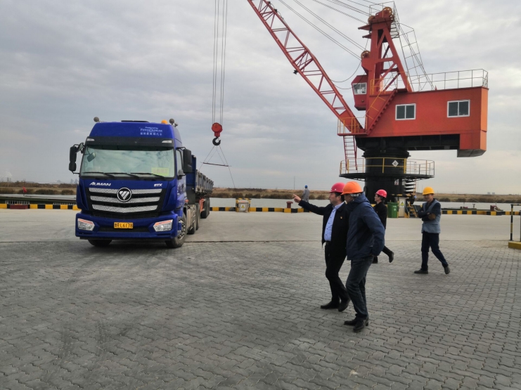 11月21日下午,投資公司董事長(zhǎng)、總經(jīng)理李國(guó)文,總經(jīng)理助理潘艾衛(wèi)來(lái)到宵洋物流碼頭指導(dǎo)工作。宵洋物流負(fù)責(zé)人沈志兵、書(shū)記季汝磊在碼頭場(chǎng)地分別對(duì)碼頭經(jīng)營(yíng)情況和后勤保障工作進(jìn)行了匯報(bào)總結(jié)。