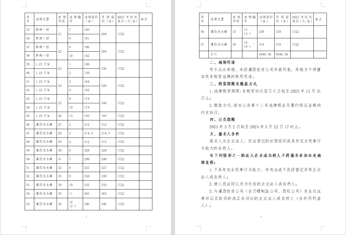 連云港市工投集團灌西投資公司2023年度淡水養殖池塘公開競租公告