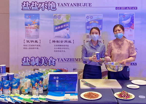 在地方特產展位,推介公司各類食鹽產品,并現場演示涼拌用鹽食用方法,直觀展示其“純凈、味鮮、易融”等特性,受到賓客的一致稱贊。