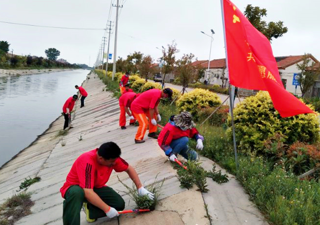 ? ? ? ?6月9日,生產生活服務中心支部黨員服務隊頂著初夏的炎熱,集結于養殖區道路、附河沿岸,開展“扛紅旗、建新功、當先鋒”實踐活動,大家手持鐵锨、鐮刀、掃帚等工具,鏟除雜草、撿拾垃圾、清掃路面。大家分工明確、行動有序,鏟的鏟、掃的掃,各司其職,充分發揮不怕臟、不怕累的奉獻精神,為職工群眾營造暢通、舒心的工作生活環境。(宋世園)