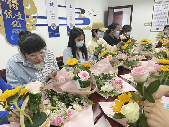 接下來,女工委組織了插花活動,特邀插花老師現場講授插花知識及技法,借用花木來抒發女職工以花感人,以花育人,意在培養女職工善于表達對母親的愛及祝福。在花藝師的悉心指導下,女職工們用自己靈巧的雙手,盡情發揮創造力,為母親制作一個美麗、飽含感恩之情的花籃。