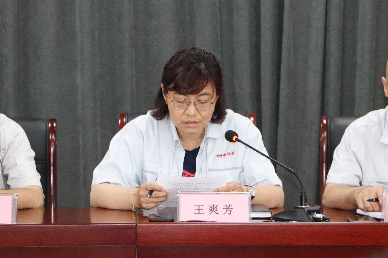 公司副總經(jīng)理王爽芳宣讀“拜師學藝,崗位成才”活動師徒責任書內(nèi)容。