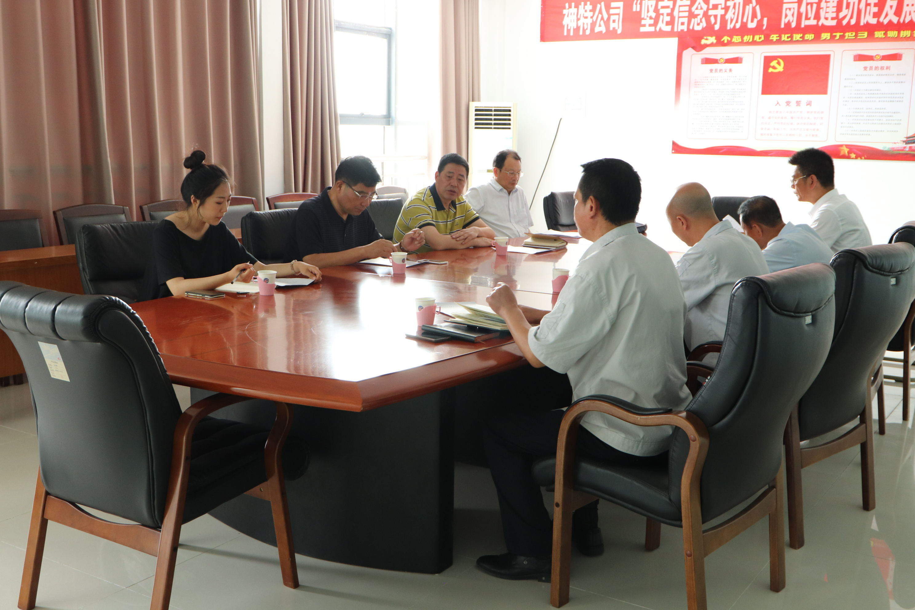 調(diào)研會上,副書記袁忠圍繞黨組織的領(lǐng)導(dǎo)作用、人財物保障、“書記項目”、陣地建設(shè)、離退休黨員教育管理專項整治、“七一”活動、“學習強國”、先進典型培育選樹、黨建特色工作等方面,就上半年黨建工作開展情況進行了匯報。黨支部書記鄒德兵、總經(jīng)理韓立新就黨建工作與調(diào)研組成員交換了意見。江舜軍部長對于我公司上半年黨建工作給與肯定,體現(xiàn)四個特點,即“四個強化”有內(nèi)容、“三組聯(lián)建”有新意、“三亮三掛”有特點、陣地建設(shè)有思路,針對下步工作,要求在凝心聚力、載體創(chuàng)新、典型選樹、文明創(chuàng)建上下功夫,持續(xù)深化黨建工作,不斷彰顯黨建實效,引領(lǐng)和推動企業(yè)經(jīng)濟工作向穩(wěn)向好開展。