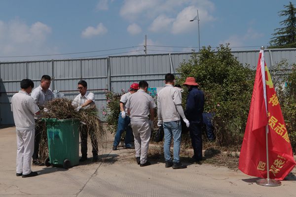 活動中,30余名黨員同志頂著烈日,他們不畏酷暑,揮汗如雨,有的在廠區的綠化帶里認真清理雜草、樹枝和垃圾,有的負責運送垃圾,到處都是熱火朝天的勞動景象。