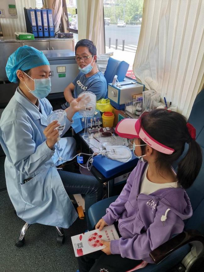 我的女兒很好奇,左瞅瞅右看看,我剛提醒她上面不能亂走,護(hù)士卻說,“沒關(guān)系,有什么不懂的可以問我。”。于是,瞬間打開了她心中的“十萬(wàn)個(gè)為什么”,她一會(huì)問問血液為什么是紅色的,一會(huì)問問這個(gè)設(shè)備是做什么的,后來問道小本子上那些字母干什么,為什么有的要畫一下?我們都給問蒙了,后來才想到她看過我十年前的獻(xiàn)血本,上面有血型勾選的;護(hù)士可能也是工作幾年的,不好意思的說,“我沒見過那樣的”。十幾分鐘的獻(xiàn)血很快就結(jié)束了,但是她們的對(duì)話仍在持續(xù),直到又有人上來了,才依依不舍的和護(hù)士姐姐再見,跟著我們一起離開。