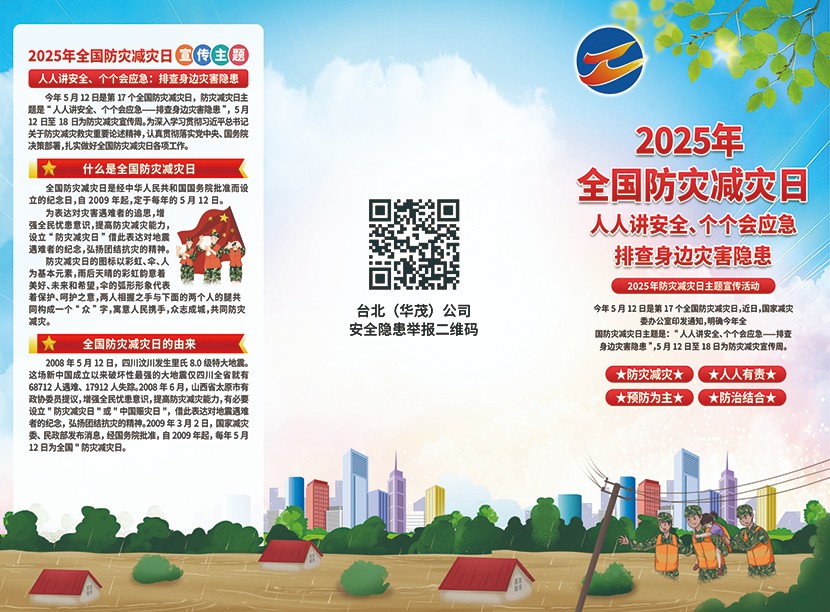 為進一步提升防災減災意識和應急避險自救能力,筑牢安全防線,5月12日下午,臺北(華茂)公司防災減災宣傳周活動啟動儀式在環保裝備產業園五樓會議室舉辦。各基層單位分管安全負責人、現場安全員、班組長及安環部人員參加活動。