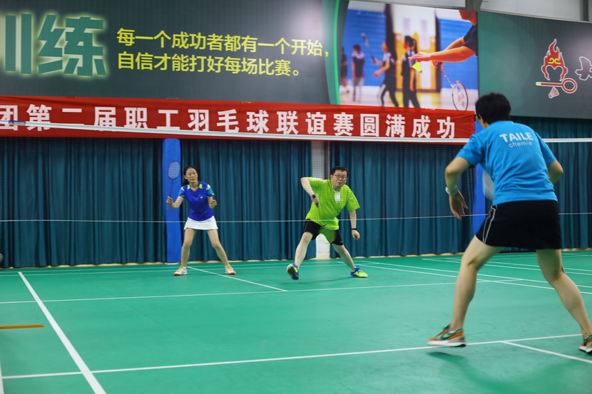 下午進(jìn)行的混雙淘汰賽迎戰(zhàn)實力強(qiáng)勁的對手集團(tuán)機(jī)關(guān)、神特、氨綸公司隊,我臺北公司隊打出亮眼表現(xiàn)。比賽中,隊員毫不退讓,盡力抓住每個得分機(jī)會。在混雙“雙保險”失利一組的情況下,另一對選手張海寧、袁桂芹穩(wěn)扎穩(wěn)打,逐漸打出了氣勢,后場高球、網(wǎng)前輕吊、大力扣殺……他們以犀利的進(jìn)攻直下三城,成功殺入決賽。