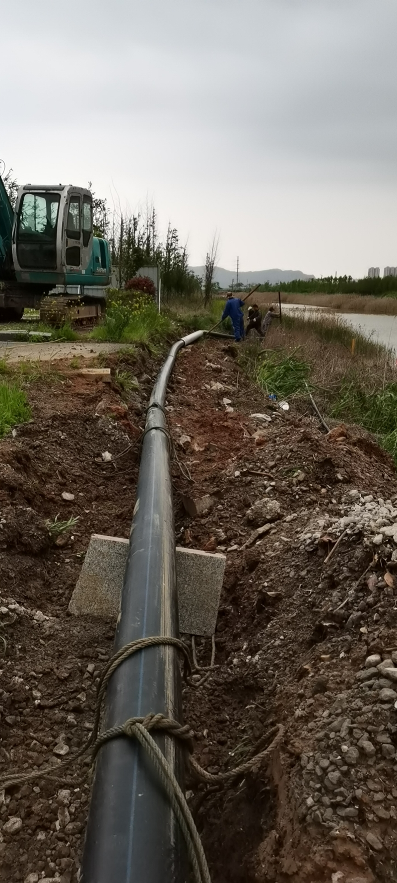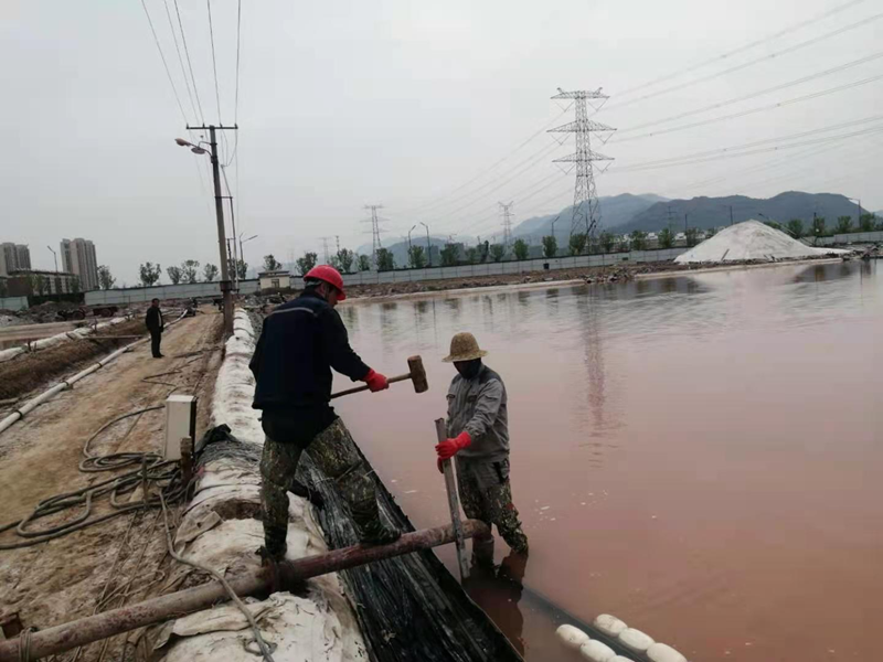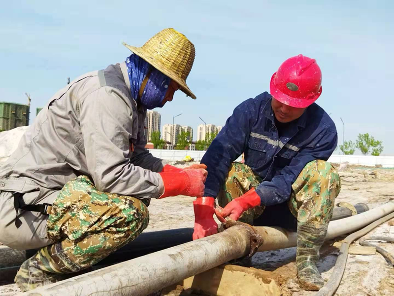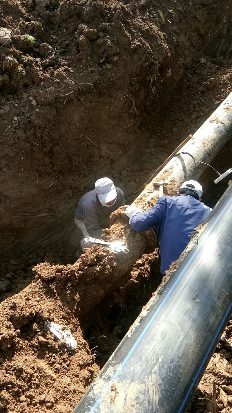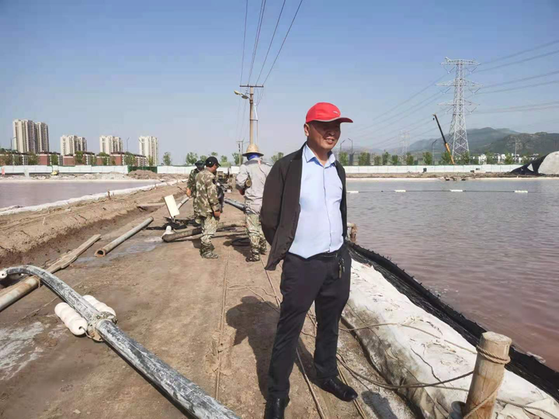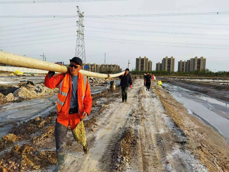 鏡頭四:新光路鹽河邊被開發(fā)區(qū)污水管道施工損壞的灌西鈣液管道,搶修工作正在緊鑼密鼓的進(jìn)行中。爭(zhēng)取早一天完成就能早一天開機(jī)打鹵,將損失減少到最小。