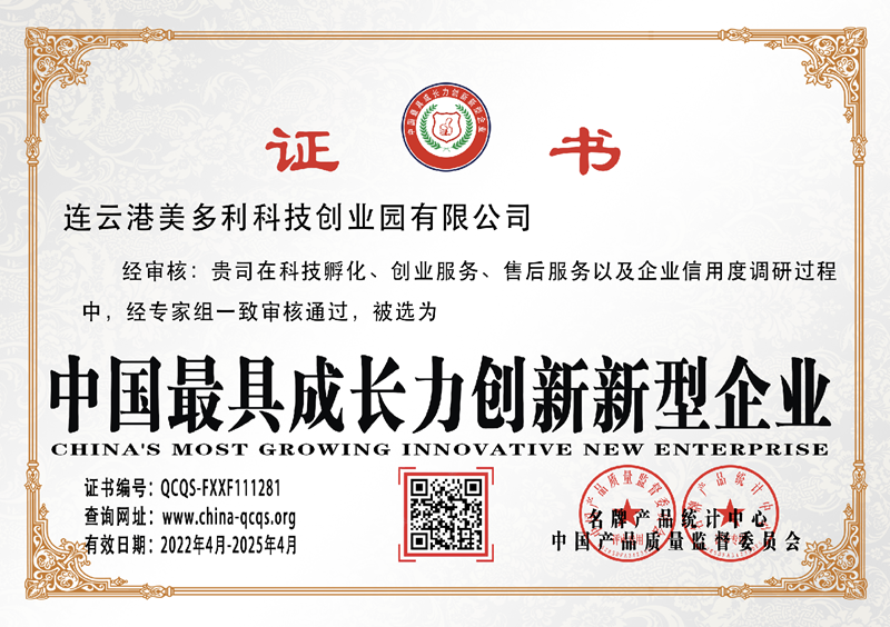 近期,美多利公司科技孵化、創(chuàng)業(yè)服務等工作通過中國產品質量監(jiān)督委員會專家評審認定,榮獲中國最具成長力創(chuàng)新新型企業(yè)。