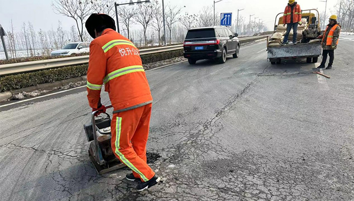市政維護“有龍威”。大年初二,市政值班人員在日常巡視中發現港前大道至蘇海路段出現3處道路坑塘,造成極大的道路交通安全隱患。值守工作人員第一時間帶好瀝青冷補料,切割機和平板振動夯等工具第一時間到崗到位。擺好安全警示錐、路面切割、補料、修復……大家齊動手,配合和諧,連續作戰2個多小時,高質高效將道路坑塘修補到位,確保春節期間道路交通安全。